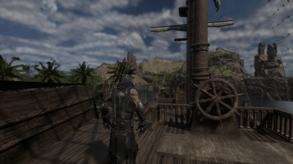 There was also one restriction in particular from this month’s course that ended up causing a bit of trouble for me. This restriction was that the levels had to connect seamlessly to each teammate’s. Now, although this is a completely understandable restriction and in my opinion necessary, I did not have this restriction in mind when creating my blockmesh in the previous month. My blockmesh level began on a pirate ship beached on an island, which complicated the concept of having the level before me connect to mine. Additionally, my level ended by looping back to the pirate ship once the player had found the treasure. Overall, my level was not designed with the intention of having another level connected to it, and my creative idea of having the level be a remote island ended up biting me. Luckily, I came up with the idea to have my pirate ship start on a dock on the level before mine and use a level sequence to sail to my island. Although the teammate before me didn’t have his level end with a dock or on an ocean, he was generous enough to make a wonderful dock that my ship could rest at before my level.