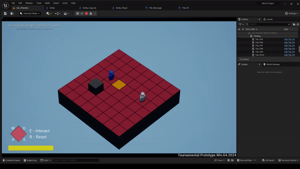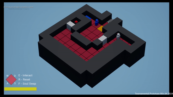 This month I was able to work on a tile-based game called tournamental. The month was split up into weekly sprints in which I focused on different aspects of development. The overall objective of the sprints was to implement new mechanics into the game, and make levels based off of the usage of those mechanics. Tournamental already had basic player movement and interaction systems set up, as well as a way to implement new levels into the game. There weren’t too many restrictions for this project, so I was able to take it in whichever direction that I saw fit!